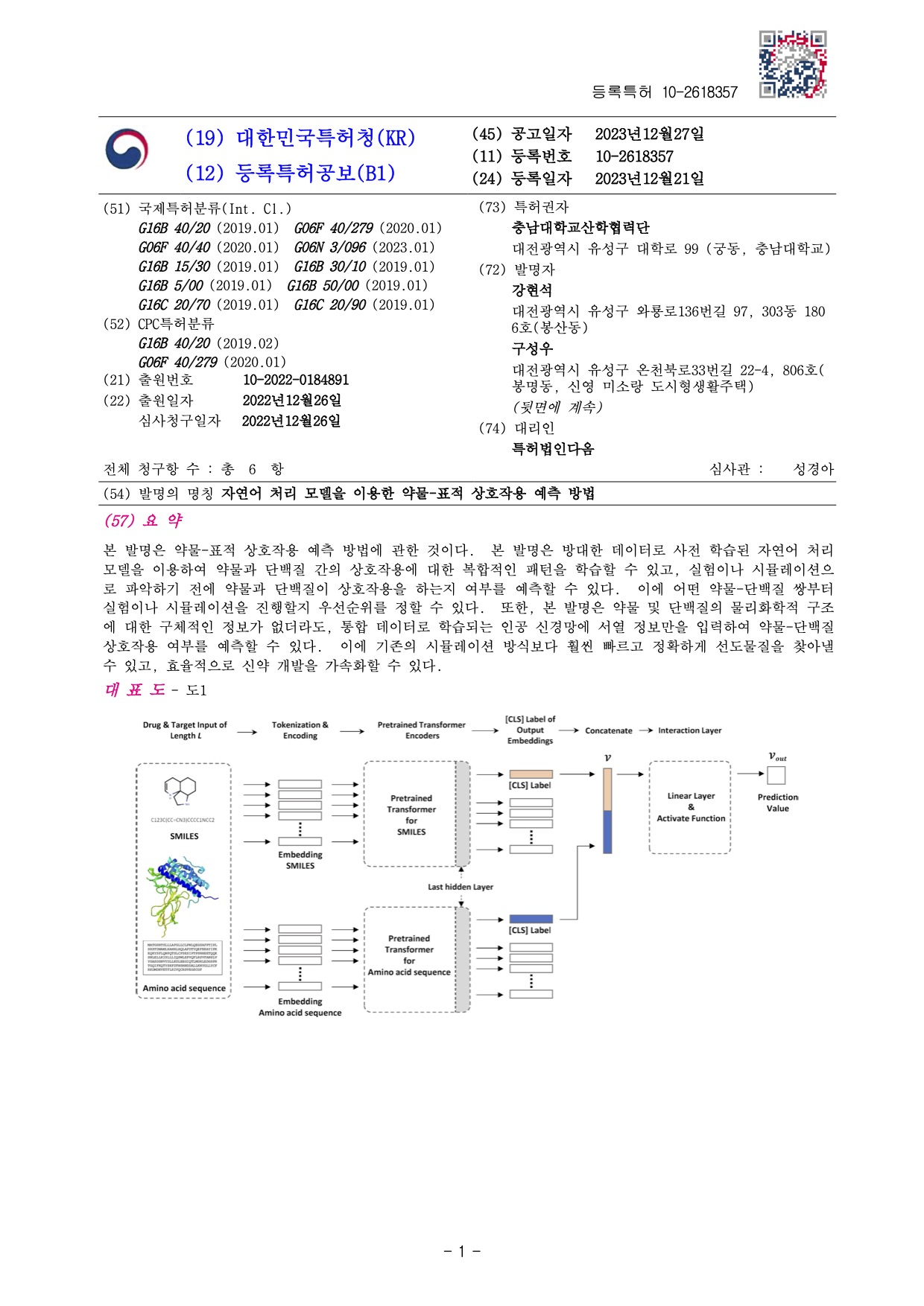 | 34 | 핵심연구 | Fine-tuning of BERT Model to Accurately Predict Drug-Target Interactions | Pharmaceutics 2022 | 2022.08 | |